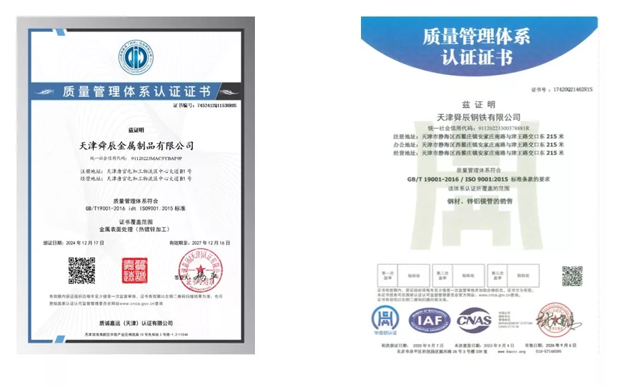 Warum sollten Sie sich für uns entscheiden? Tianjin Shuncheng Industry verfügt über jahrelange, akkumulierte Produktionstechnologie und kann eine 12-jährige Bilanz von null Ausfällen und null jährlichen Qualitätsvorfällen vorweisen, was eine solide Grundlage für die Produktqualität bildet. Das Unternehmen hält sich strikt an nationale Produktionsstandards und verfügt über ISO 9000-, 3A-Systemzertifizierungen und EU-CE-Zertifizierung. Mit einem 12-stufigen Prozess und einem 3-stufigen vollständigen Inspektionsmechanismus erreicht das Unternehmen jährlich null Qualitäts- und Sicherheitsvorfälle und 12 Jahre lang keine Auftragsausfälle, was seine bewährte Stärke unter Beweis stellt. Jedes fertige Produkt wird vor dem Verpacken und Versenden einer Trocknung, Prüfung und Feinbearbeitung unterzogen, um eine hervorragende Qualität zu gewährleisten. Das Unternehmen beschäftigt über 300 Produktionsmitarbeiter und kann ERW-Stahlrohre in 236 Spezifikationen herstellen. Dabei bietet es ein umfassendes Spektrum an Spezifikationen und unterstützt die individuelle Anpassung an unterschiedliche Anforderungen.