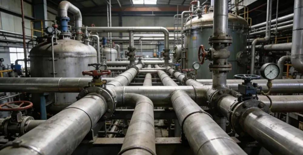 Rohrleitungen für Chemieanlagen: In der Chemieproduktion werden häufig nahtlose Stahlrohre in Rohrleitungssystemen für den Transport stark korrosiver Chemikalien verwendet, beispielsweise in Reaktoren und Verdampfern.