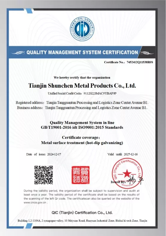 Die Tianjin Shunchen Industrial Company ist ein umfassendes Industriekettenunternehmen. Der Hauptsitz wurde 2014 gegründet und befindet sich in der Industriezone Daqiuzhuang, einem wichtigen Stahlzentrum in China. Die Geschäftstätigkeit des Unternehmens umfasst mehrere Bereiche, darunter die Tiefbearbeitung von Stahlprodukten sowie die Produktion und Verarbeitung von Feuerverzinkung. Seine Tochtergesellschaften unterhalten das ganze Jahr über einen Lagerbestand an verzinktem Stahl von über 20.000 Tonnen und gründen damit einen großen Supermarkt aus verzinktem Stahl, der Lagerung und Vertrieb integriert. Durch die Auswahl speziell geformter achteckiger Stangen kann Shunchen Industrial Ihnen hochwertige Produkte und professionelle Dienstleistungen bieten.